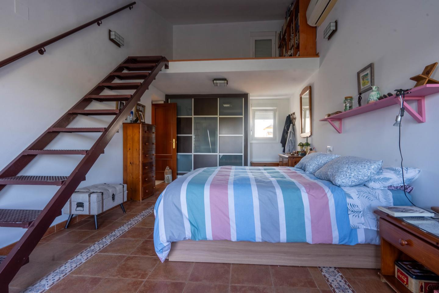 The upper floor contains the remaining bedrooms, all of them spacious and with built-in wardrobes, as well as two additional full bathrooms.