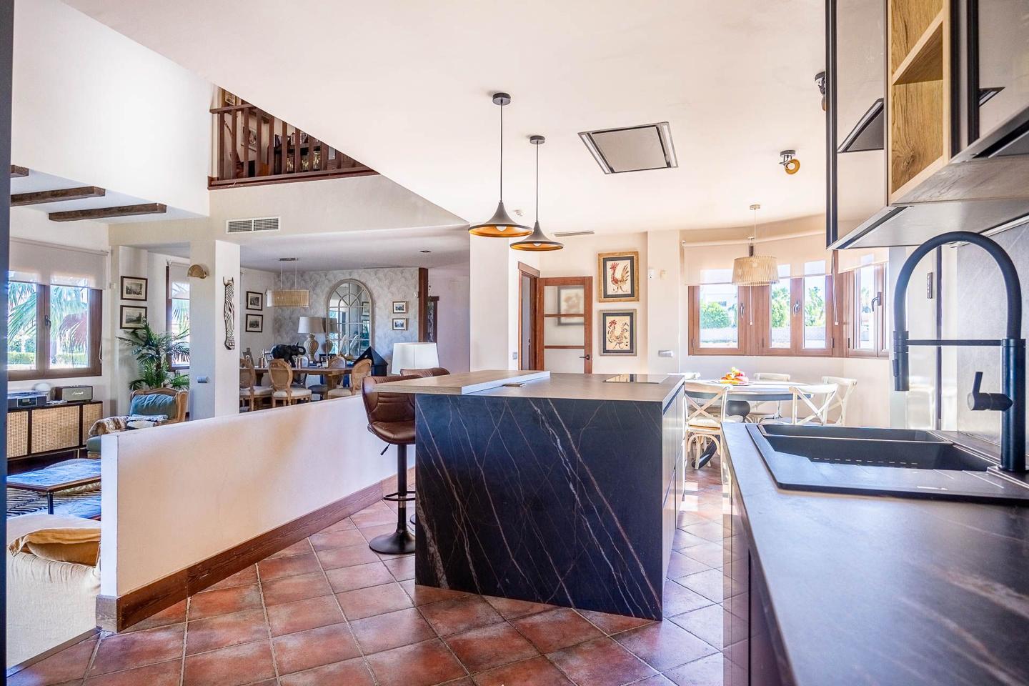 ✅Fully equipped designer kitchen with island and dining area.