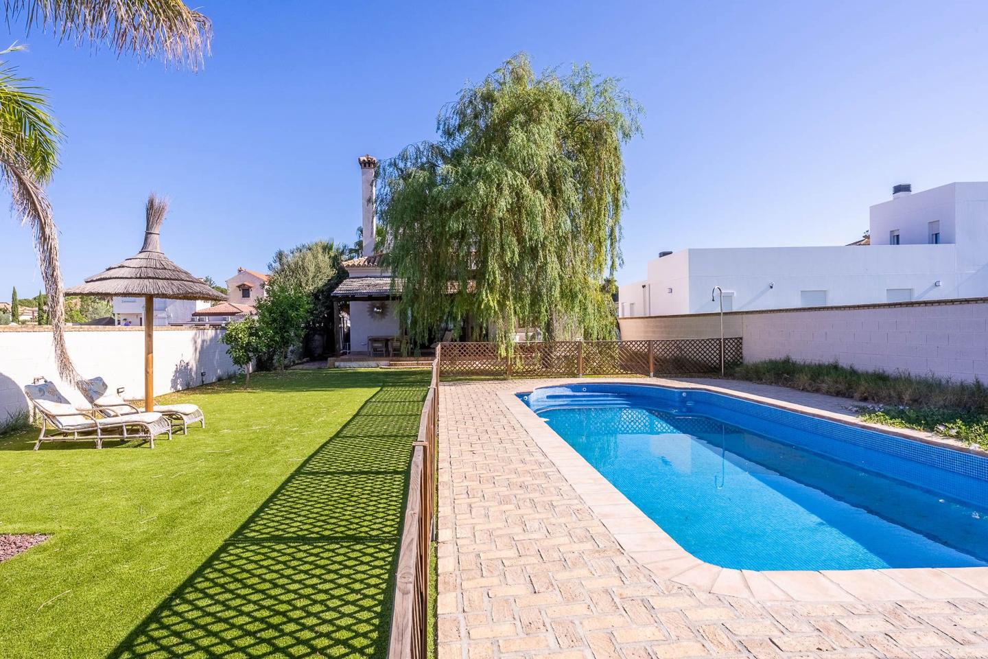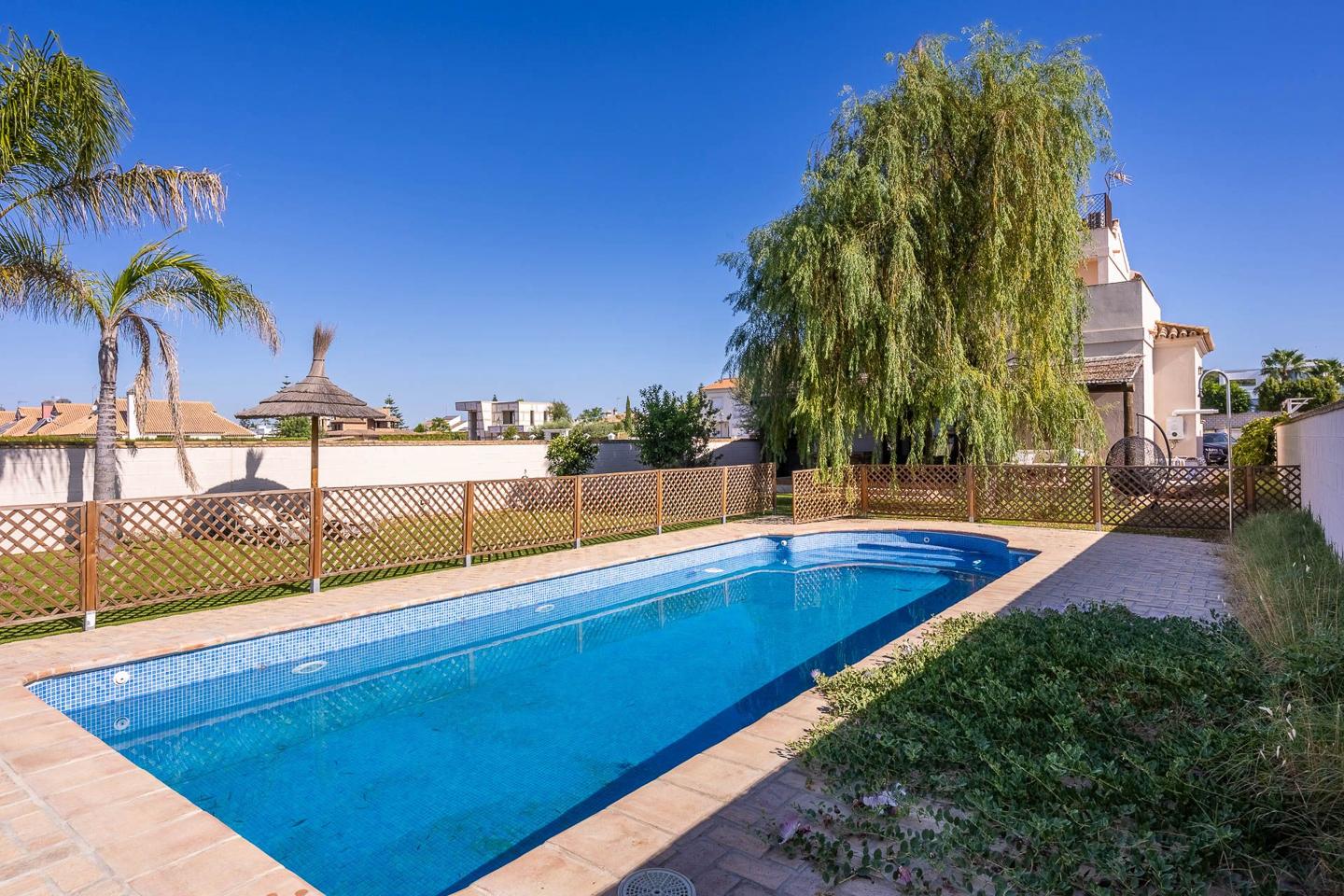 Hispalica Propiedades presents this two-storey house with private pool located in one of the most prestigious residential areas of Bollullos de la Mitación. A quiet environment surrounded by nature, ideal for families or anyone looking for comfort and quality of life near Seville city.