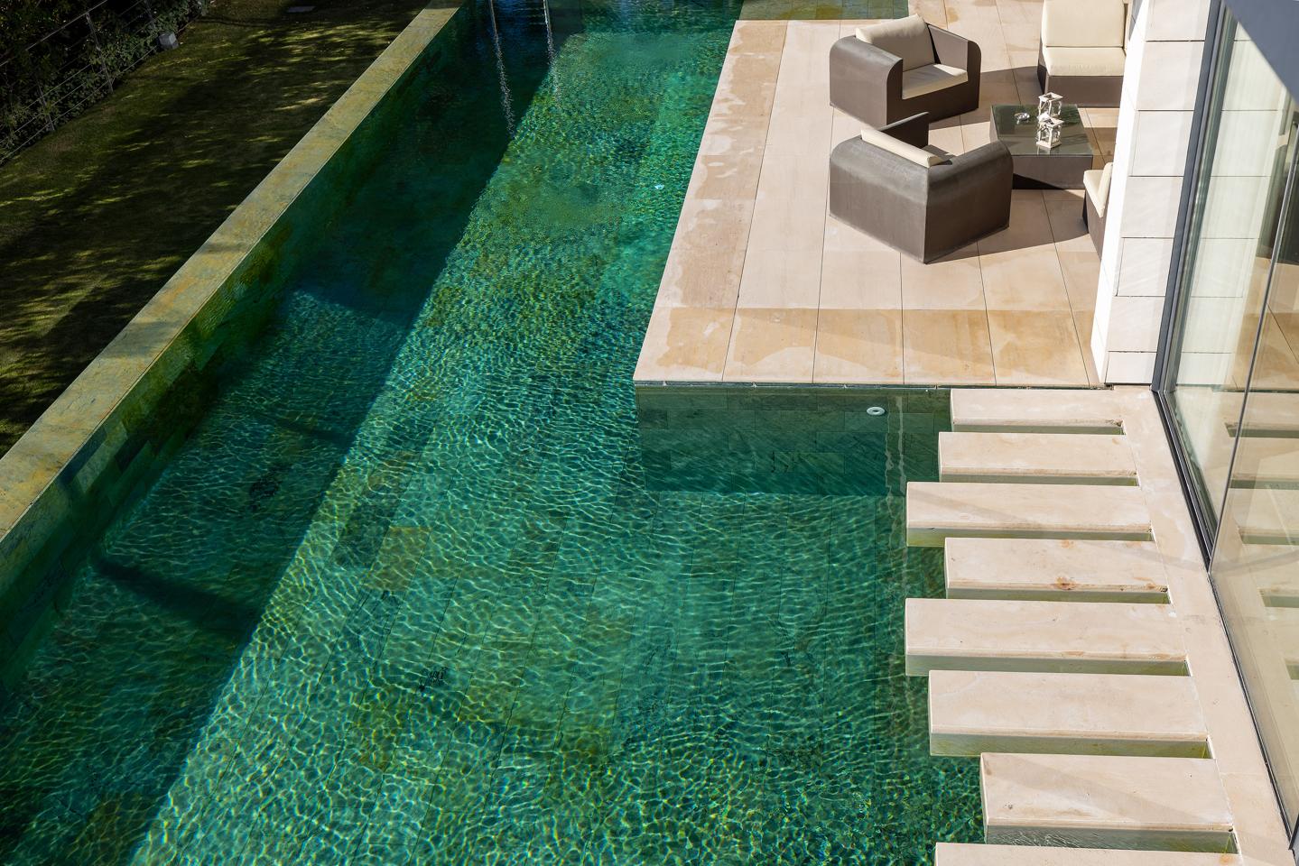 This villa is equipped with advanced technology, including a Daikin VRV ACS climate system, underfloor heating throughout the house, air renewal with heat recovery, a Full Control 4 home automation system, and surveillance cameras, ensuring comfort and security.