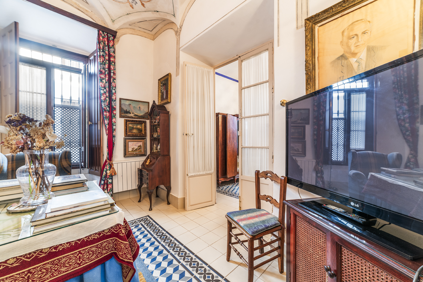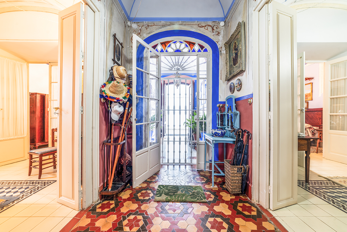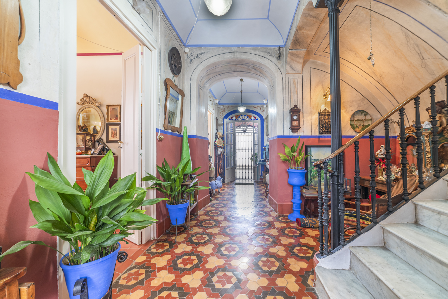 Upon entering, this house impresses with its marble staircase, high ceilings, and perfectly preserved and restored original hydraulic tile floors.