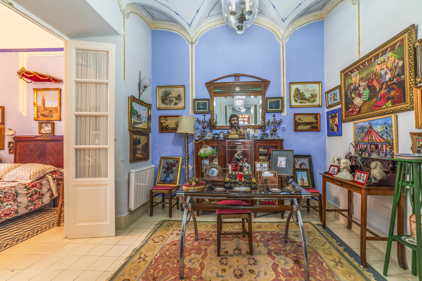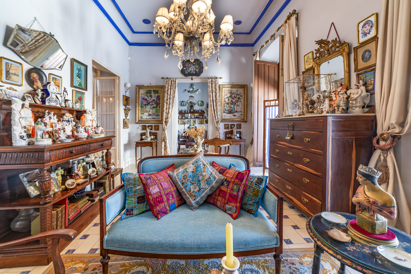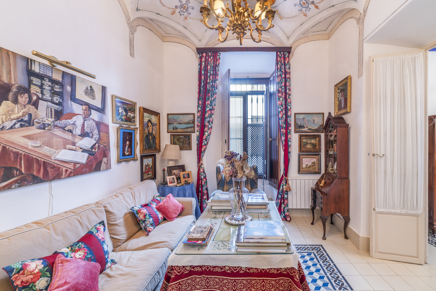 Upon entering, this house impresses with its marble staircase, high ceilings, and perfectly preserved and restored original hydraulic tile floors.