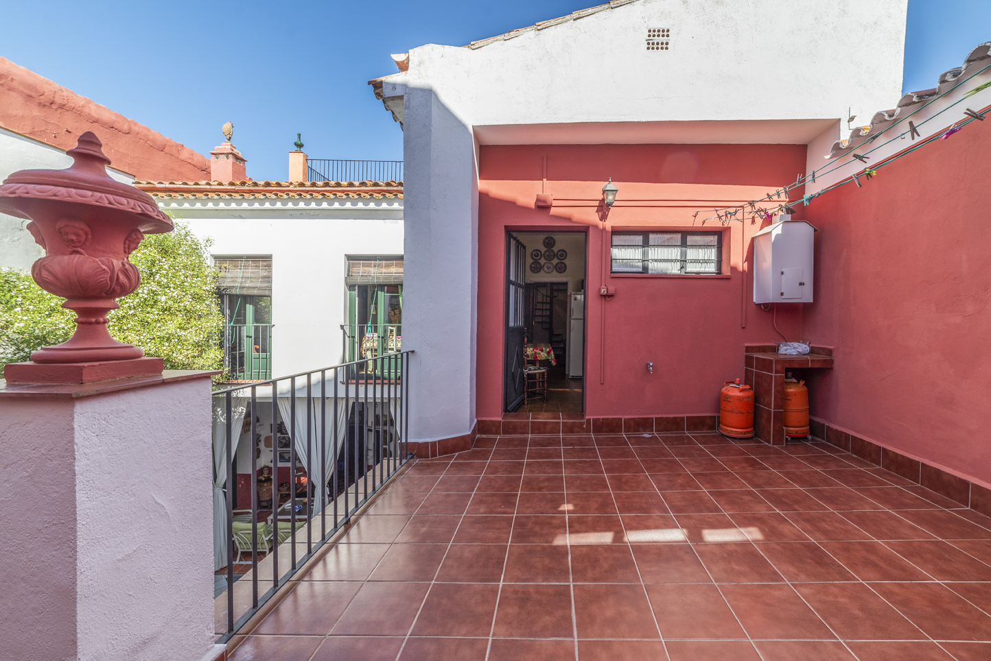 A second kitchen, spacious and bright, with direct access to a private terrace overlooking the courtyard.