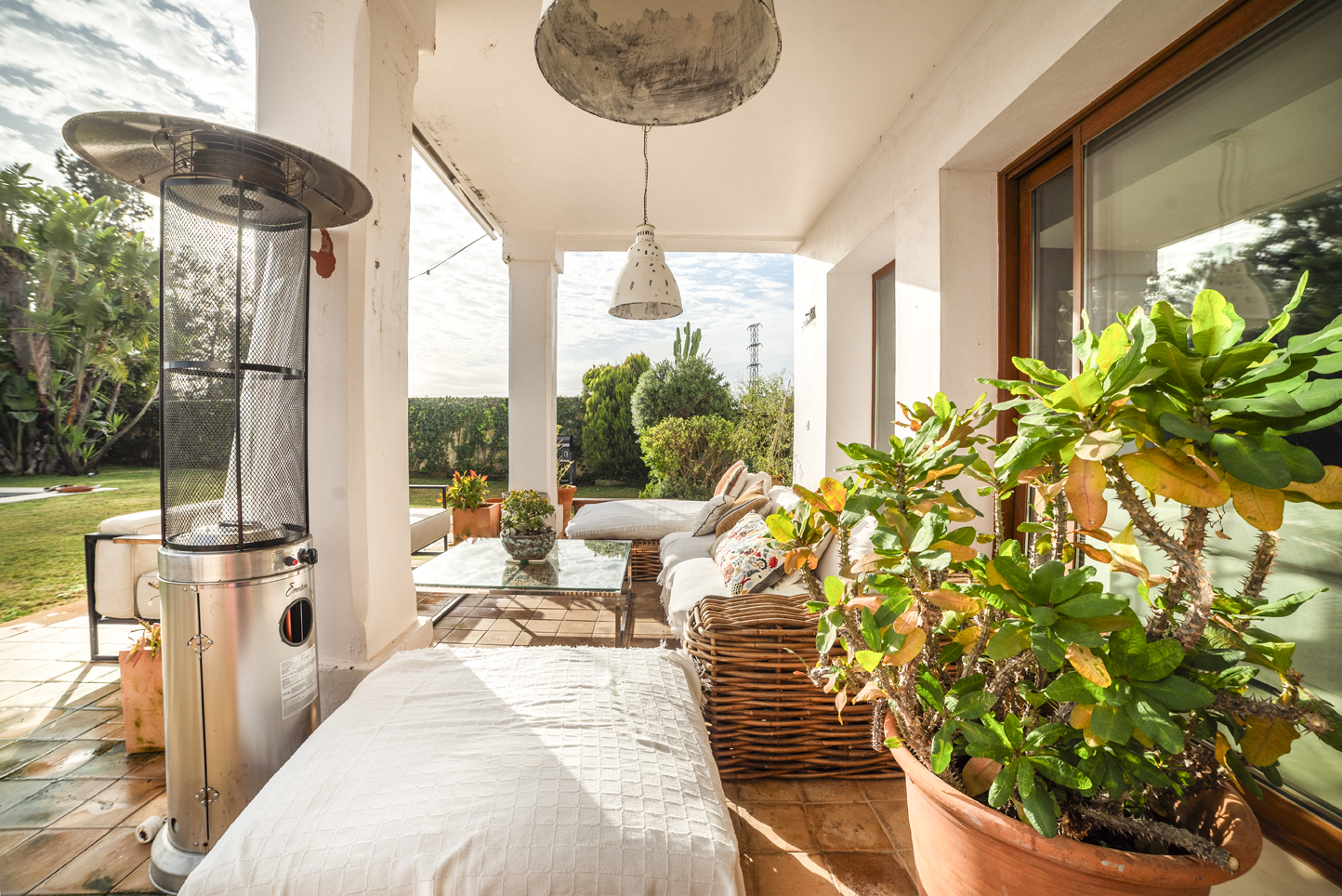 L’extérieur est conçu pour profiter du climat de Séville : piscine d’eau salée, zones de détente et puits privé pour l’arrosage.