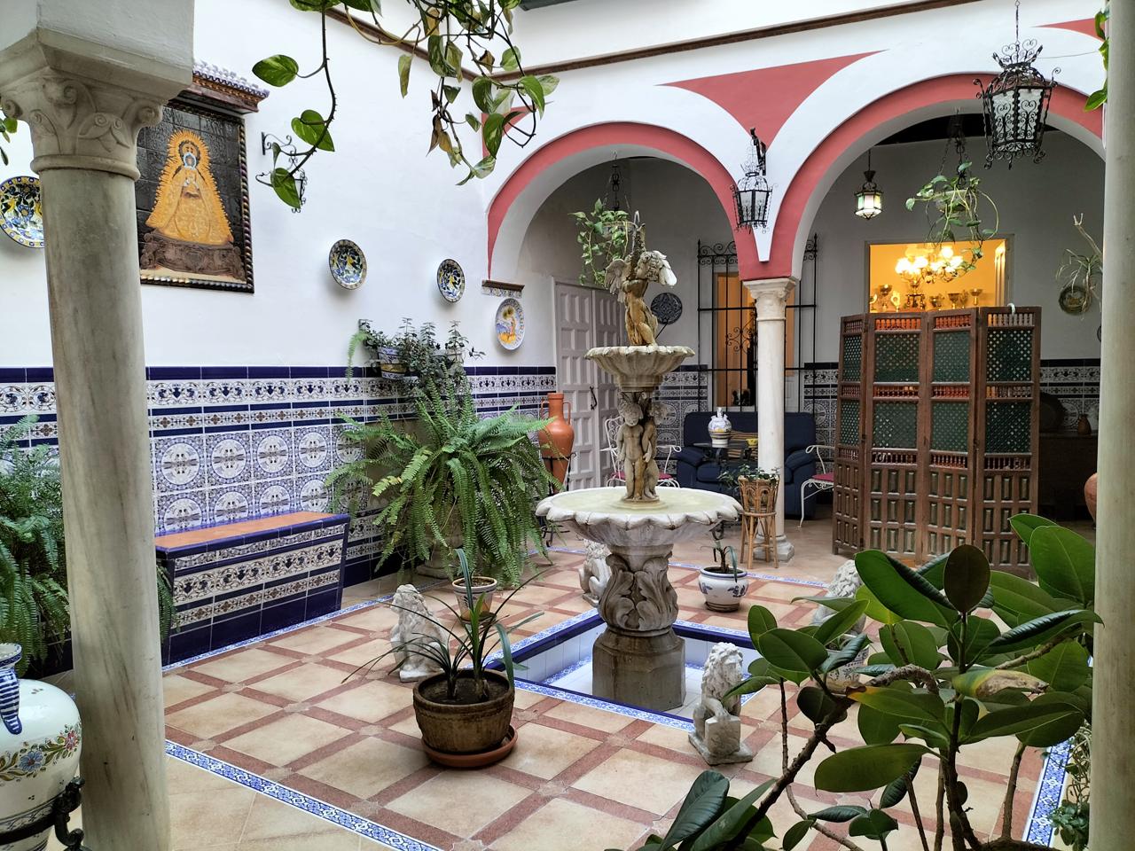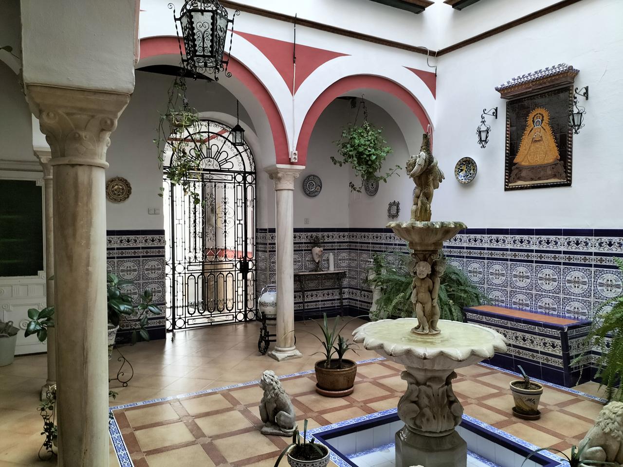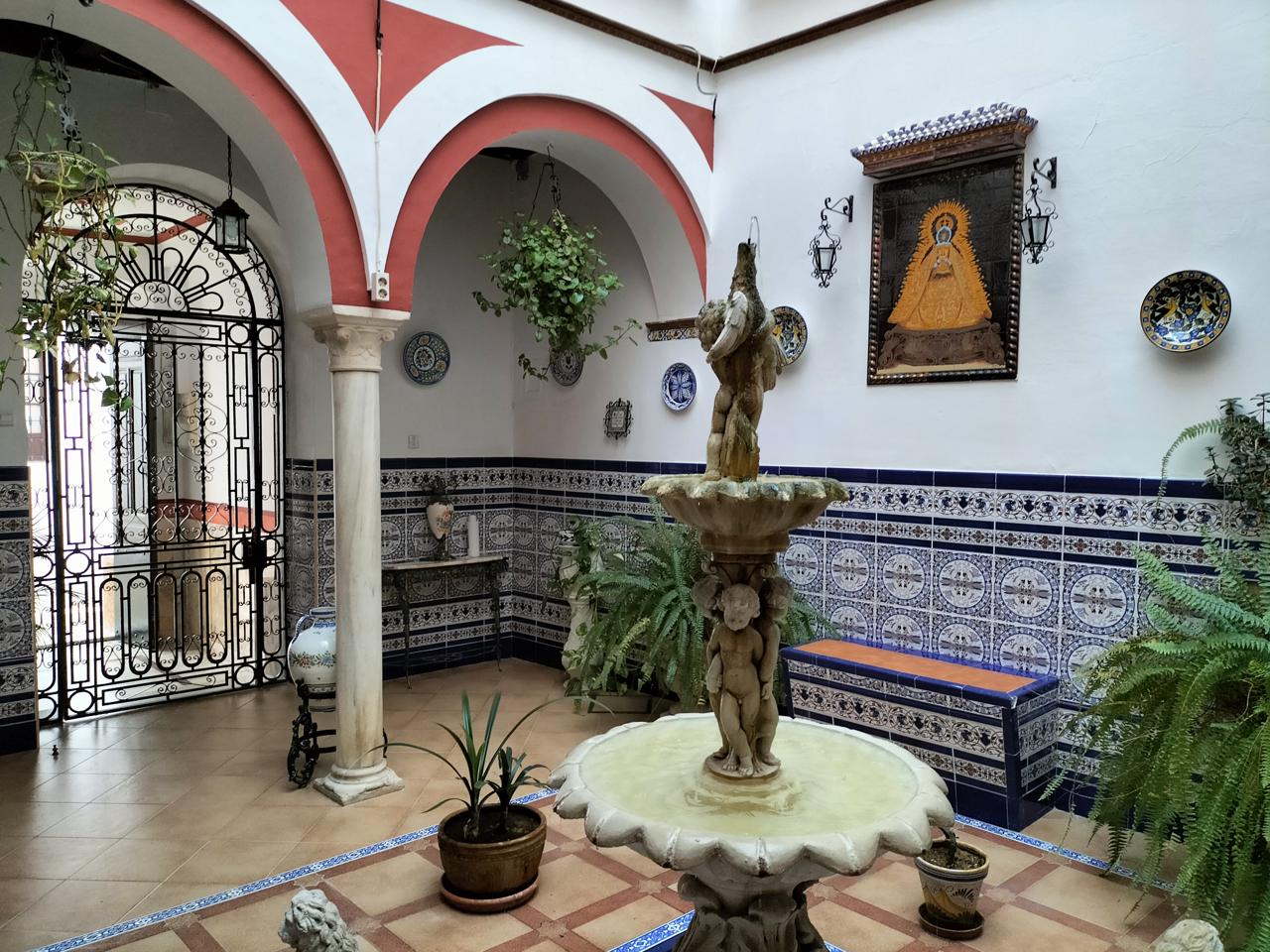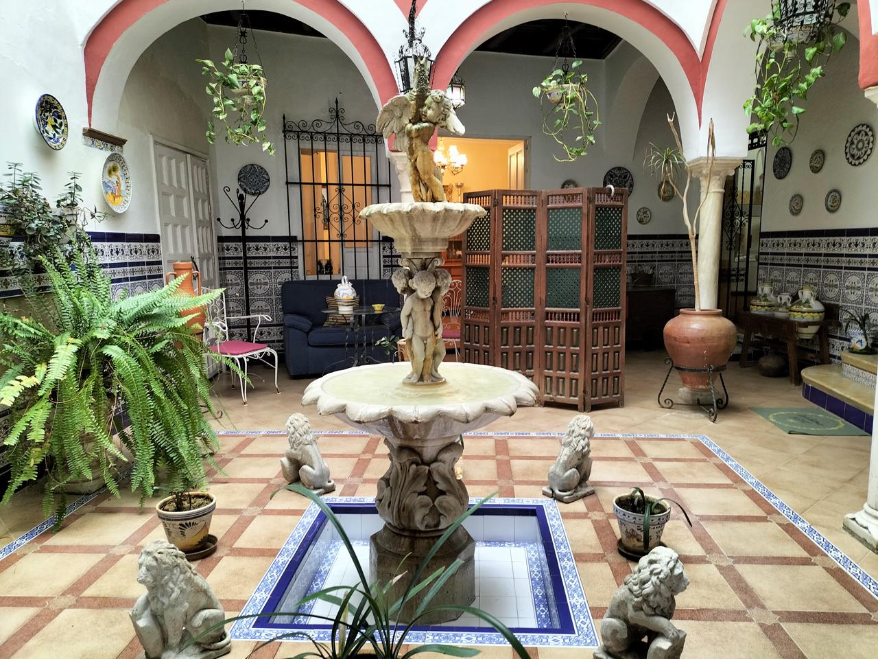 Entramos desde un patio andaluz con fuente, que da la bienvenida a la vivienda.