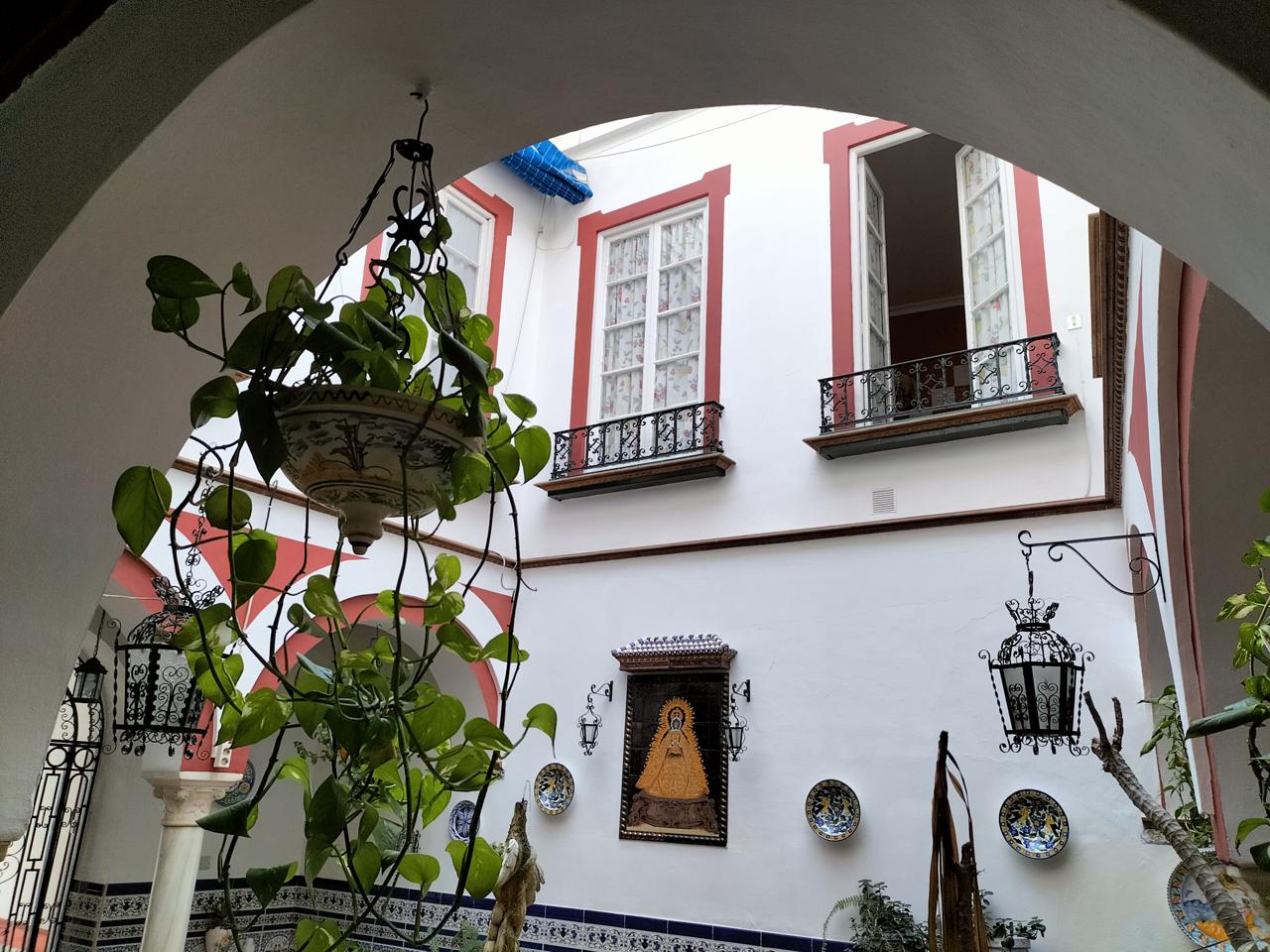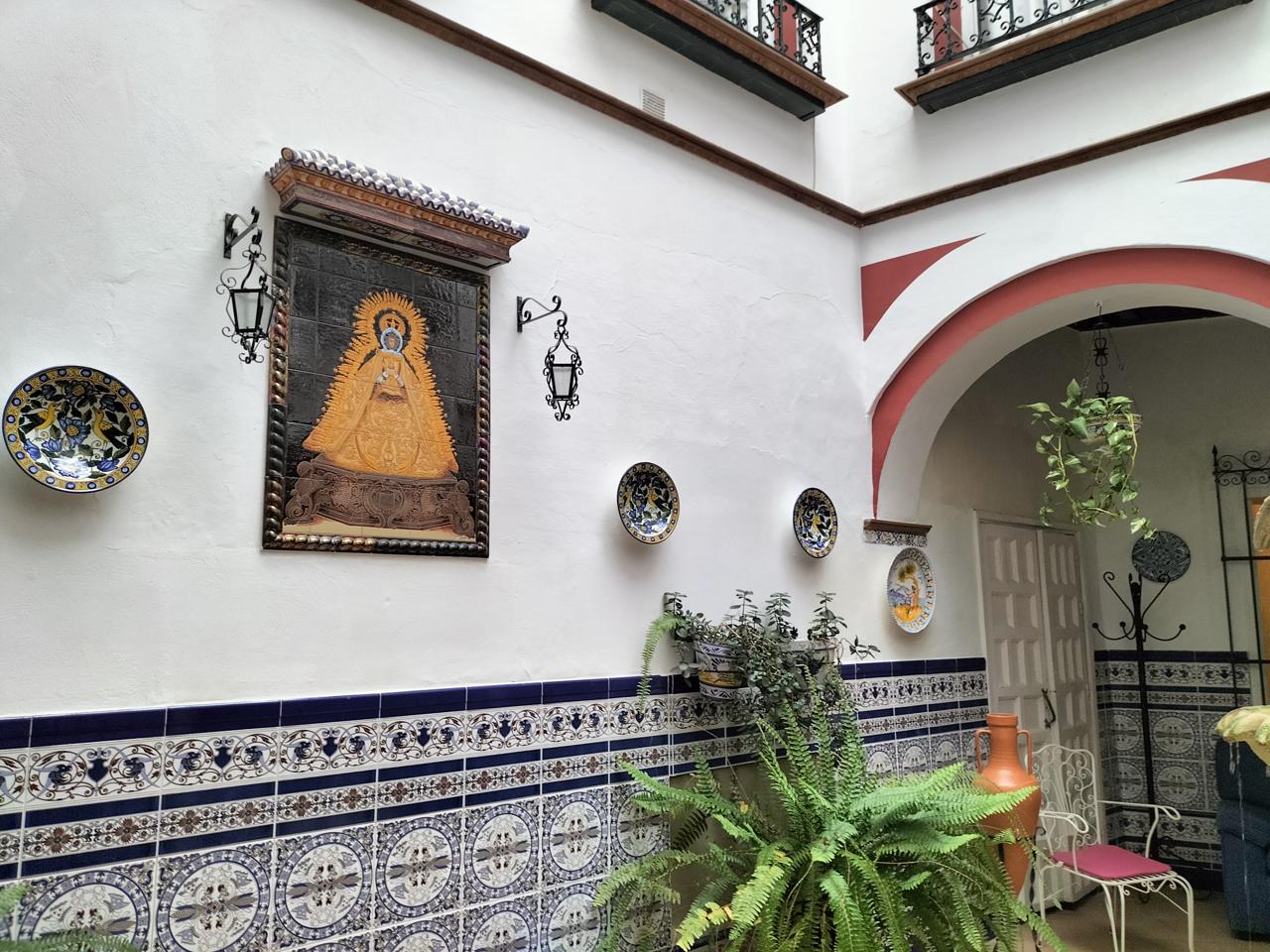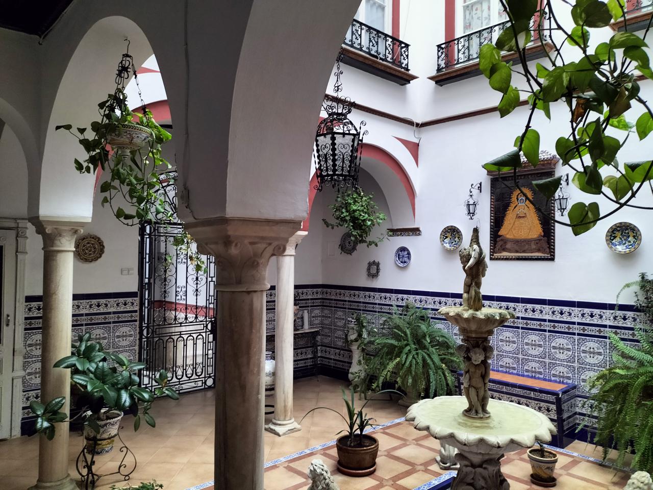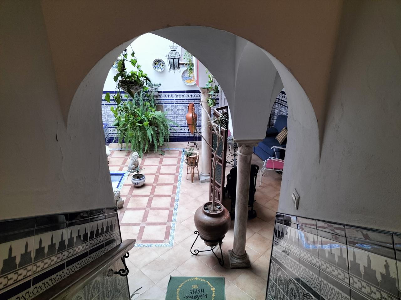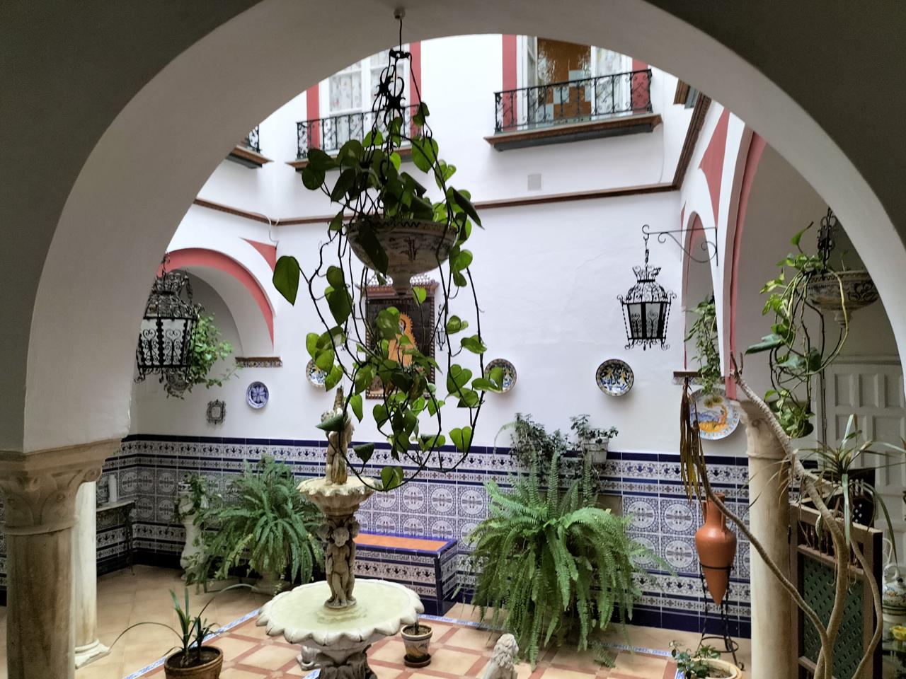 Entramos desde un patio andaluz con fuente, que da la bienvenida a la vivienda.