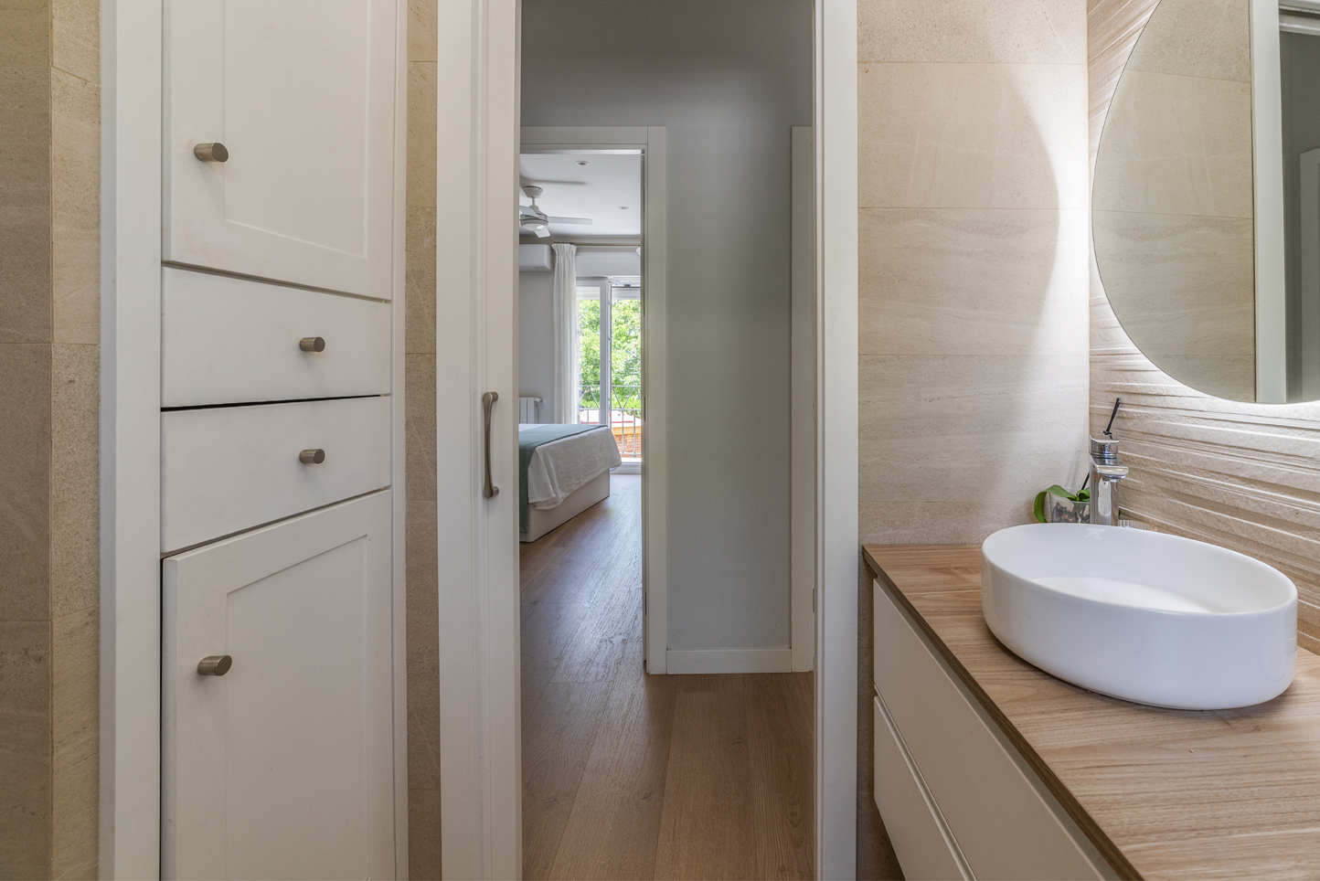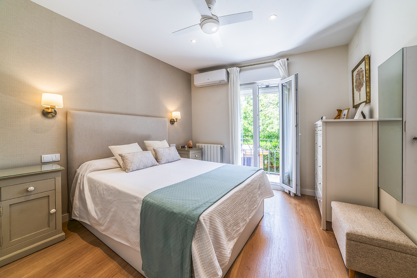 Cuenta con 4 dormitorios con armarios empotrados y 2 baños completos de líneas actuales. Espacio suficiente para familia, despacho o invitados sin sensación de ajuste.