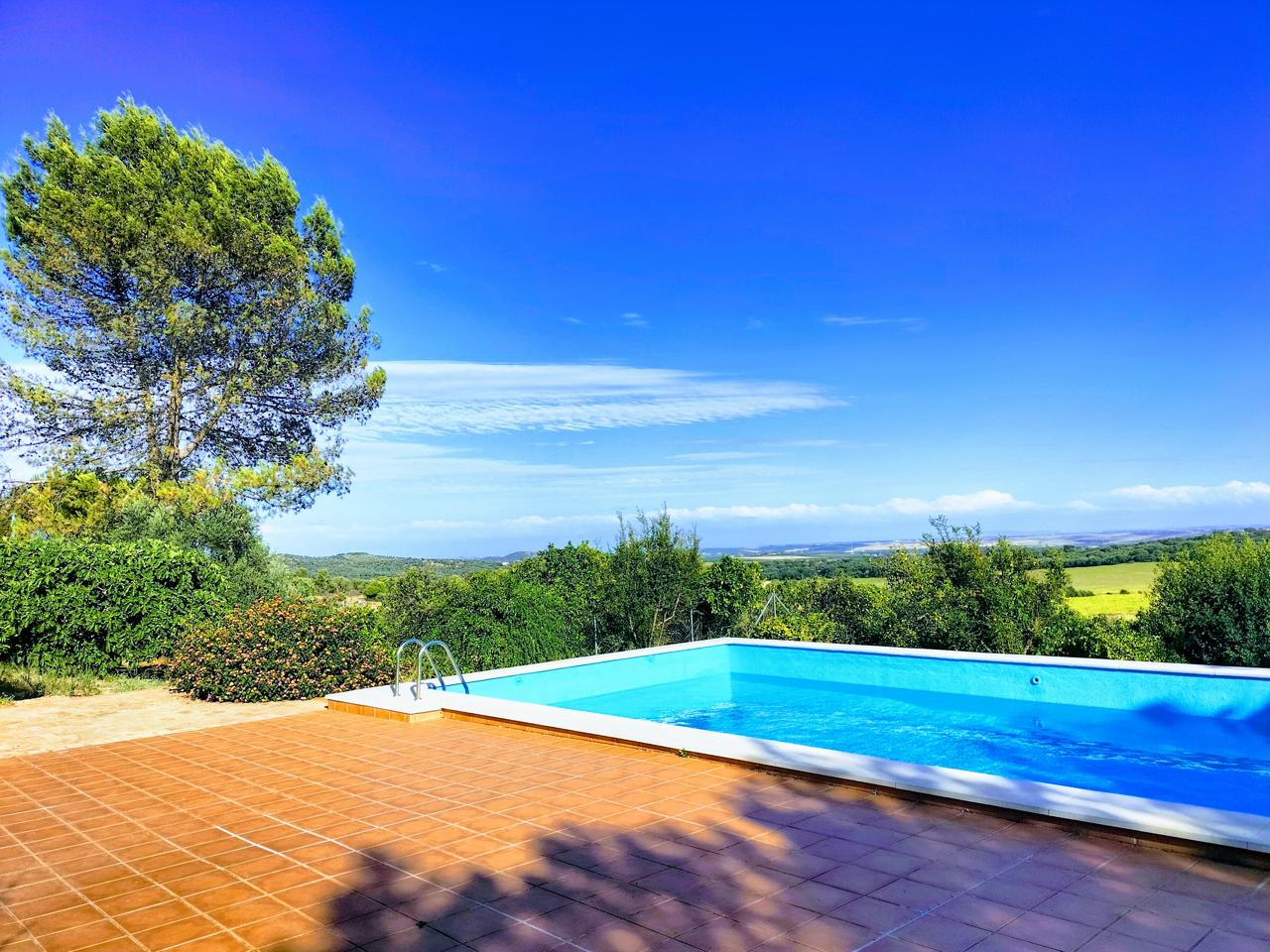 La casa cuenta también con una gran piscina con porche cubierto, arboleda y hermosas vistas.
