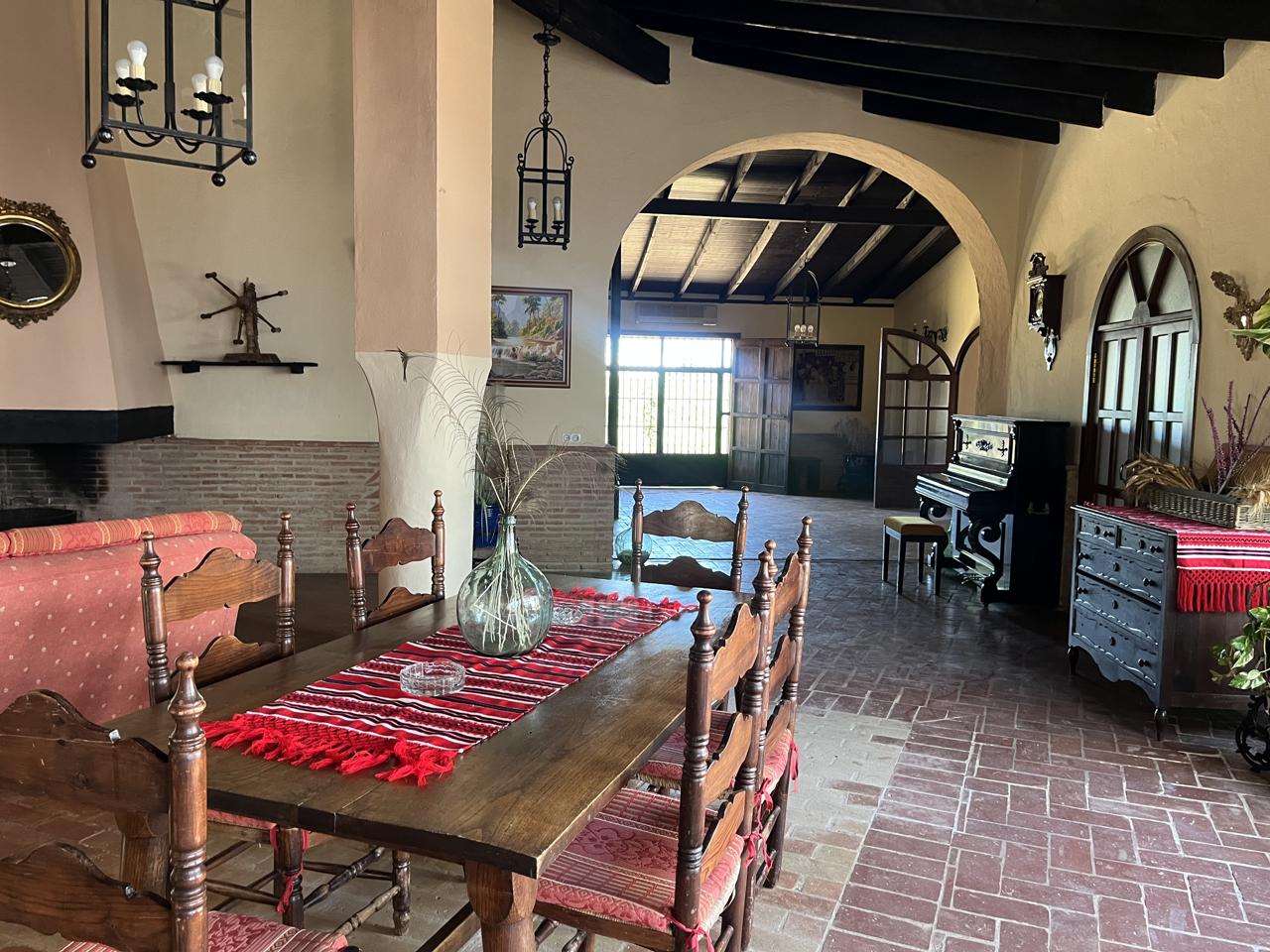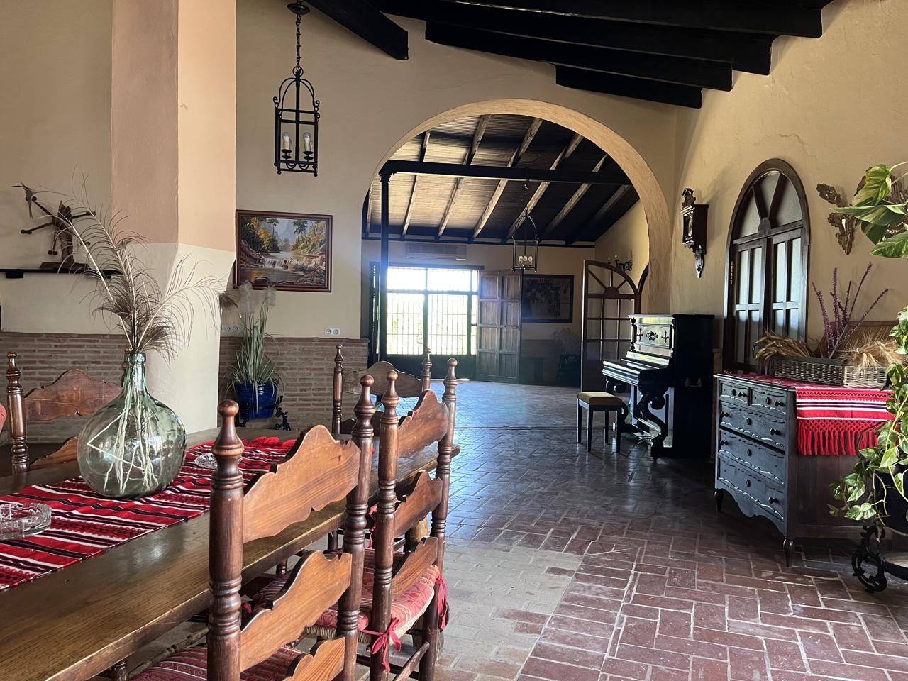 La casa principal, de dos plantas, irradia encanto andaluz. Desde sus amplios salones hasta la cocina totalmente equipada, cada espacio está impregnado de elegancia y autenticidad.