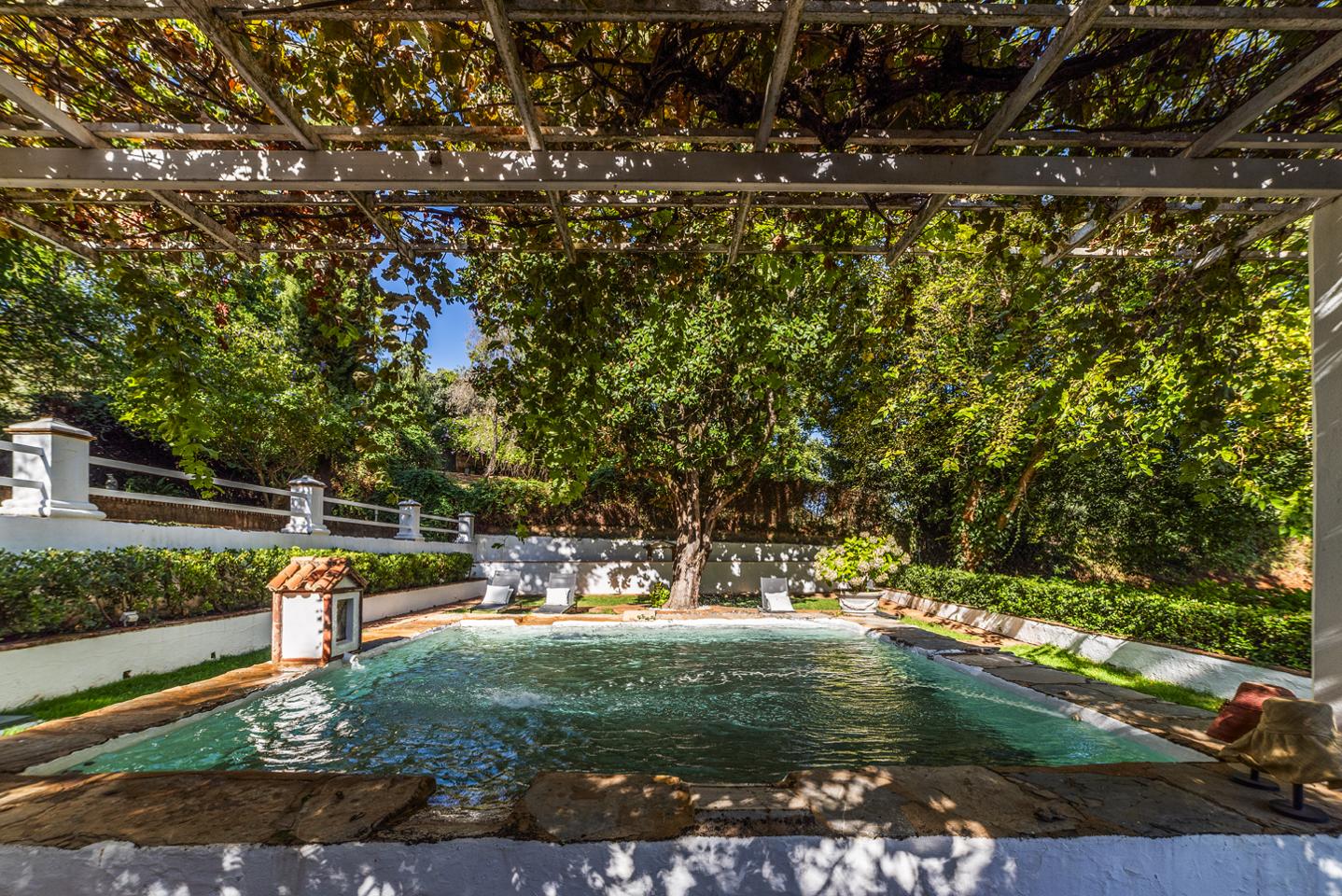La propiedad cuenta con una piscina tipo alberca inspirada en las antiguas zonas de lavado, integrada en el entorno natural y rodeada de vegetación.