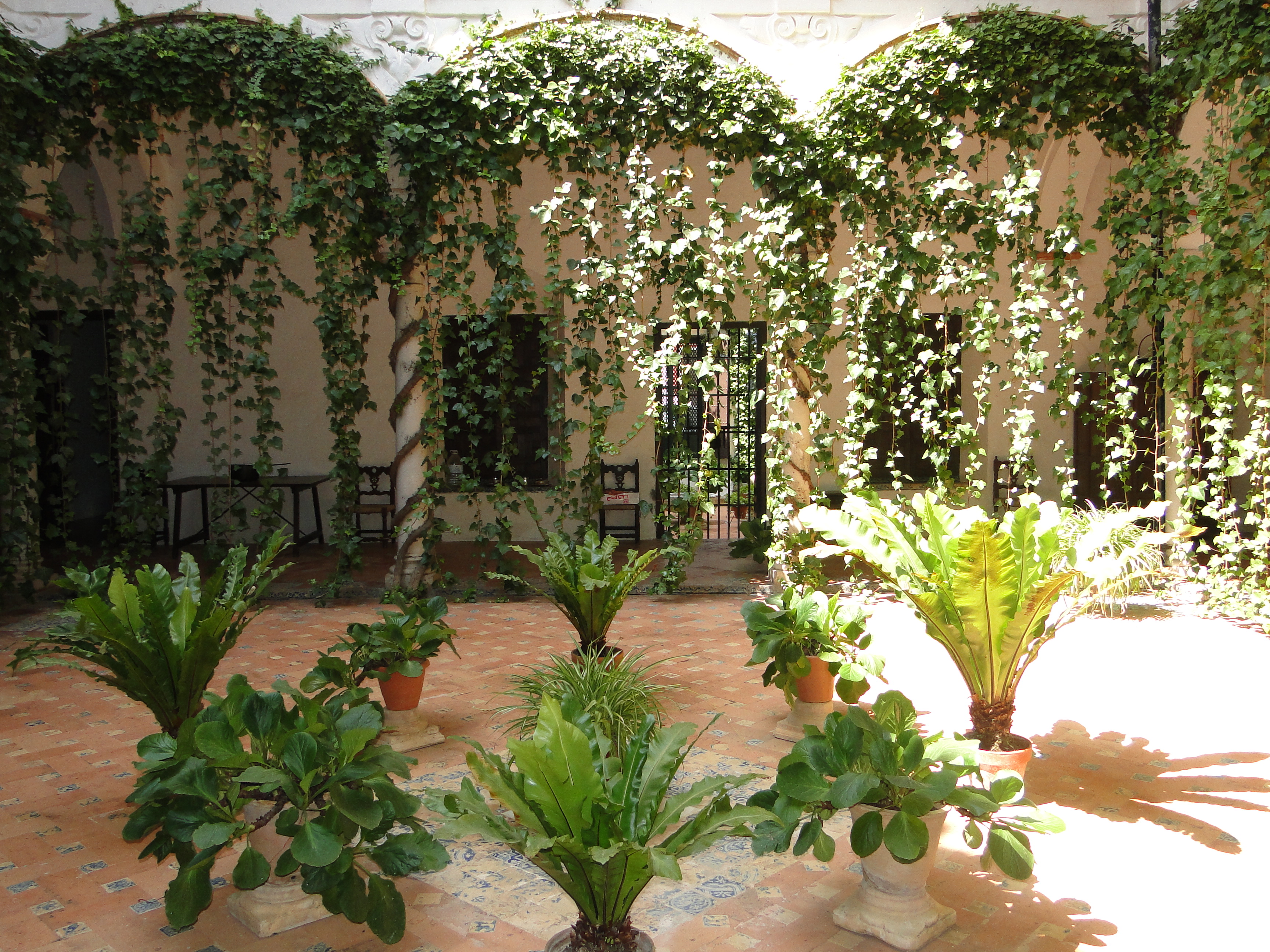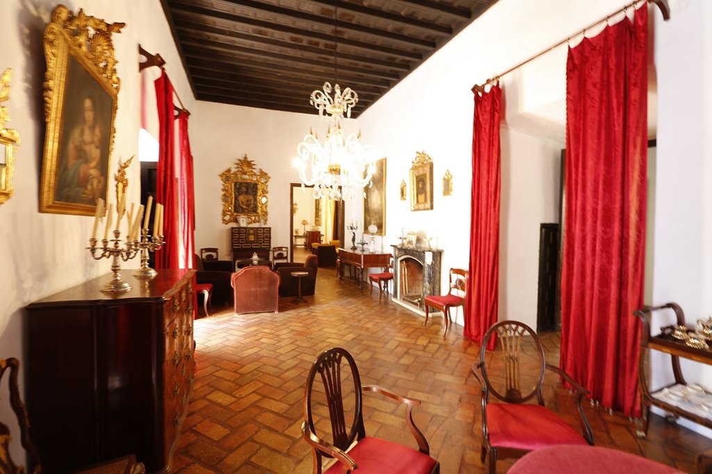 El resto de esta parte de la casa, construida en el setecientos, organiza sus crujías alrededor de un patio enmarcado con arcos de medio punto que se asientan sobre columnas de mármol. Al lado izquierdo de este patio se abre una suntuosa escalera de acceso a la planta superior, y al fondo del edificio la zona auxiliar de servicio donde pueden verse un sótano y la bodega.