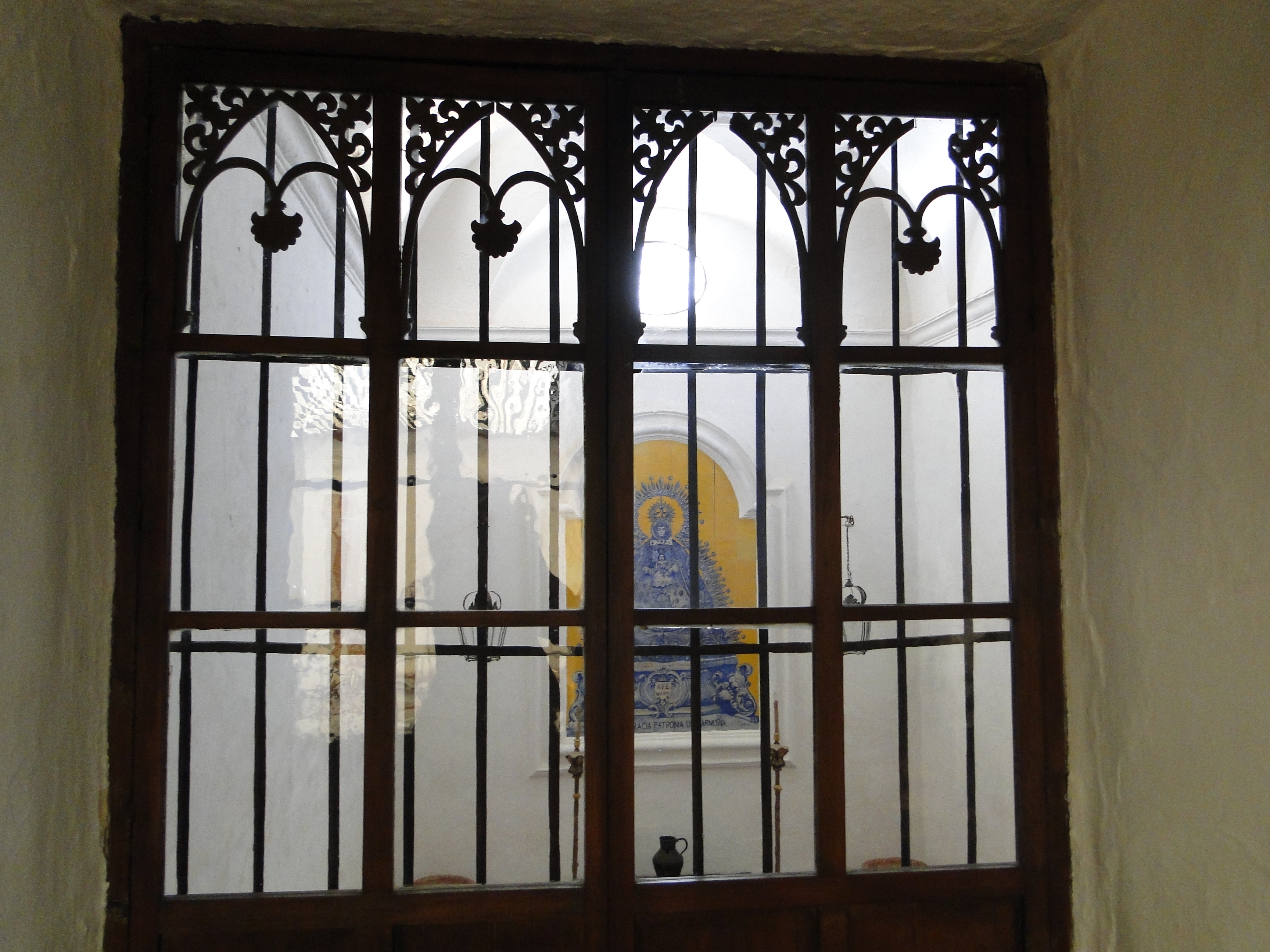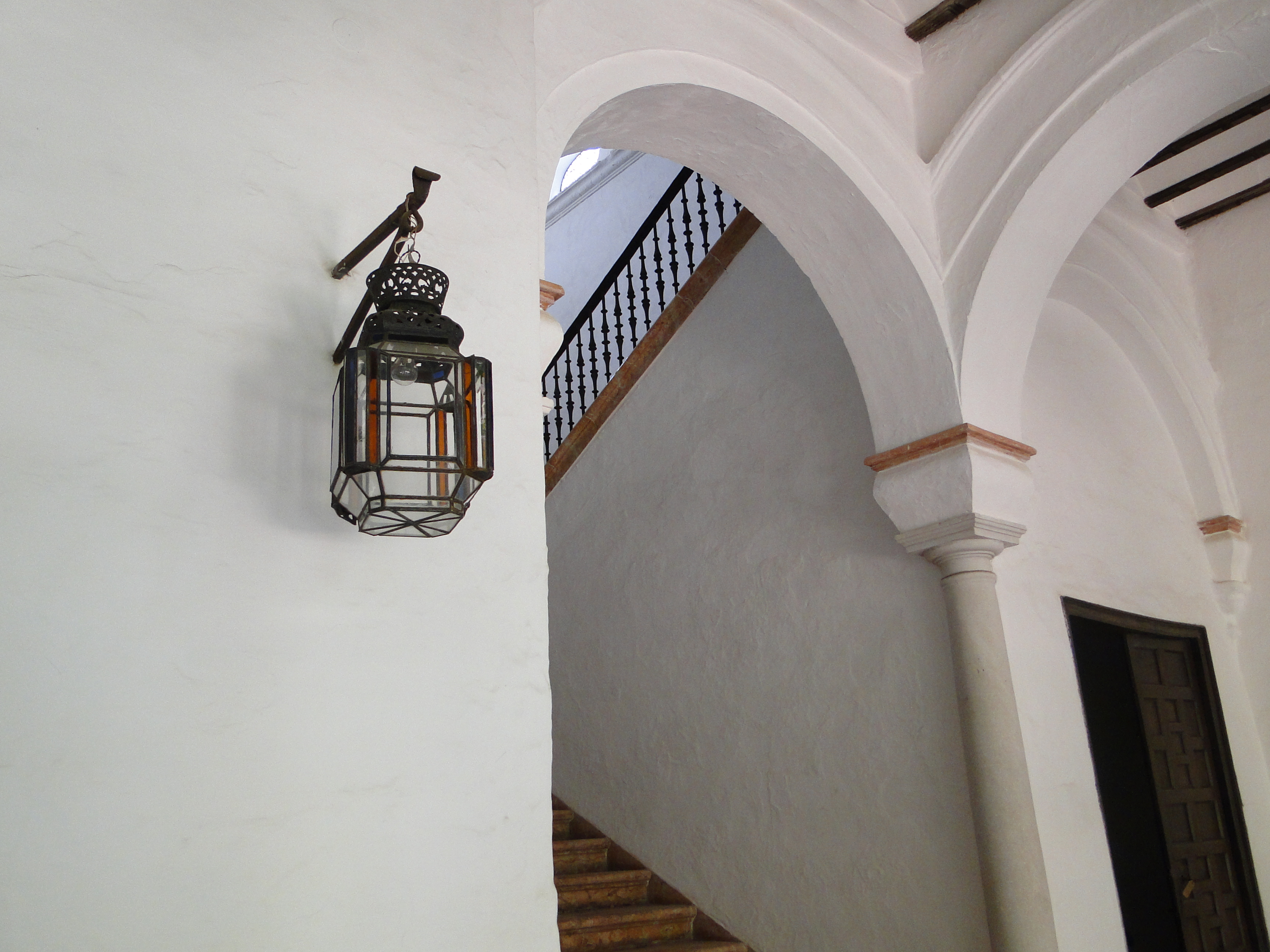 Traspasando la portada se llega a un apeadero, en parte abovedado, que a su vez da paso a las caballerizas ubicadas a la izquierda, al gran patio central y a otras nobles dependencias existentes a la derecha.