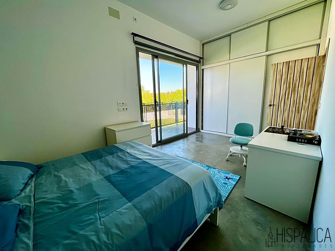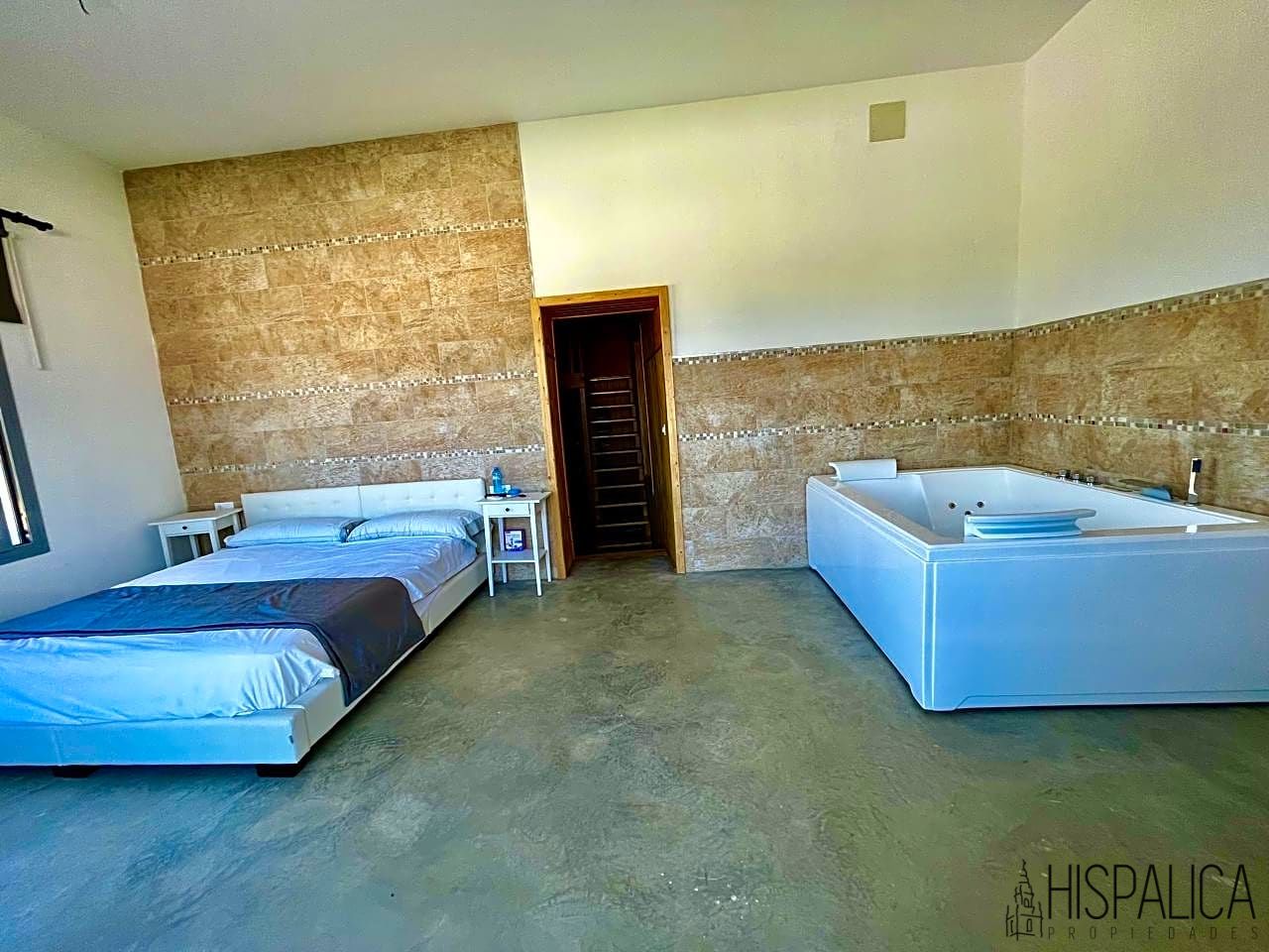 En la planta baja tiene un dormitorio también. En la segunda planta, se encuentra la habitación principal con jacuzzi y grandes ventanales, en la habitación hay un enorme vestidor de madera.