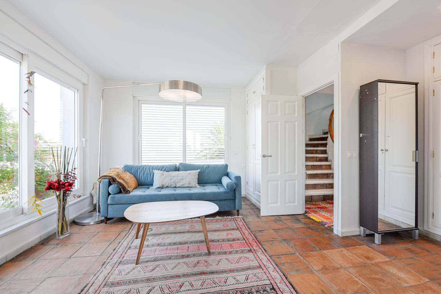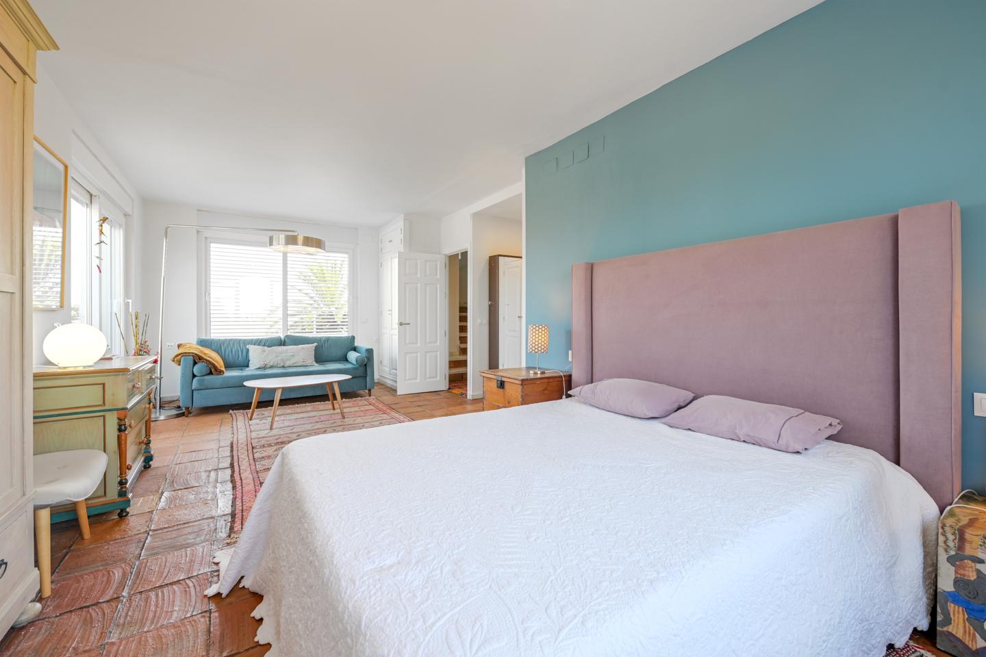 La primera planta se abre a dos dormitorios grandes con baño en suite y terraza propia, además de otra terraza de unos 40 m² perfecta para tomar el sol o leer bajo el cielo de Sevilla.