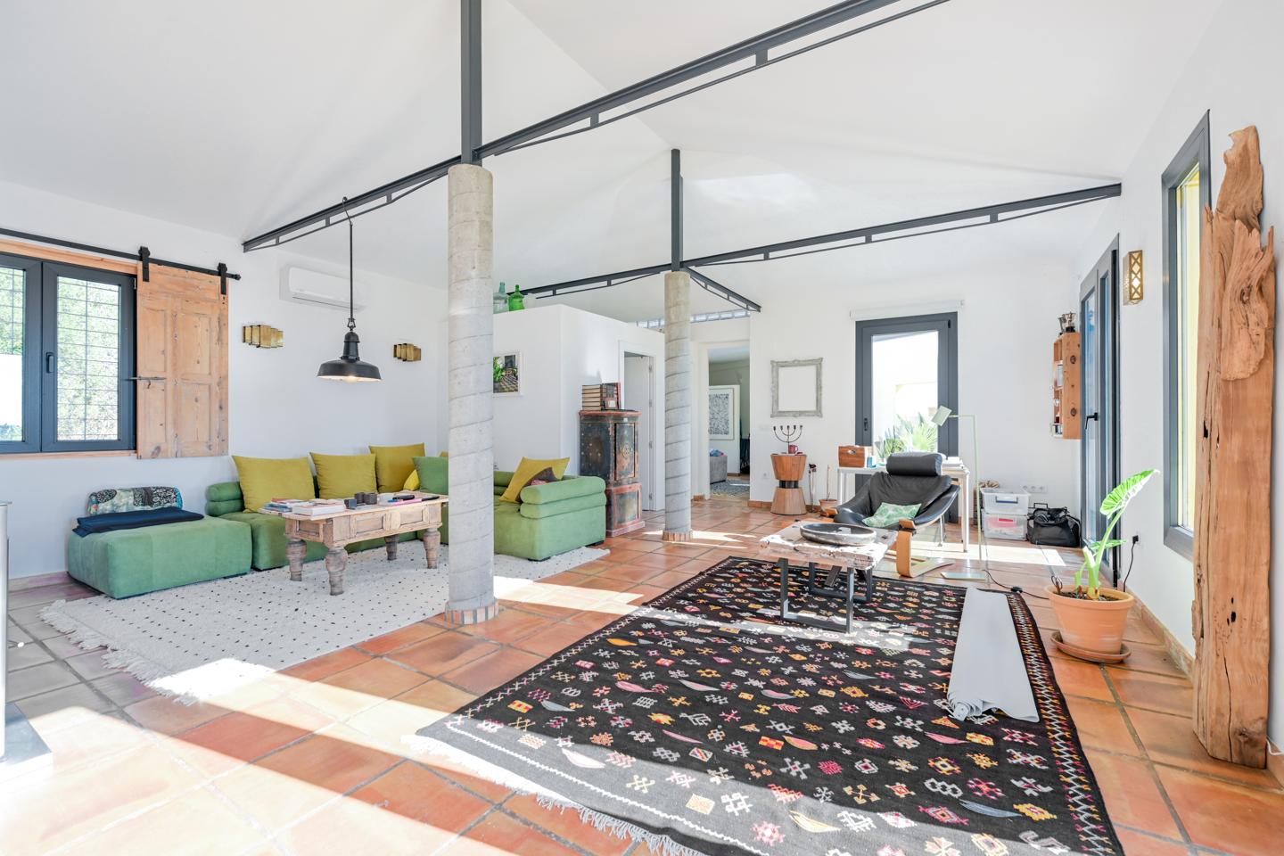 Con 556 m² construidos sobre más de 4.700 m² de parcela, combina la vivienda principal con dos lofts independientes de 60 y 120 m². En total, 7 dormitorios, 7 baños, 3 cocinas y 3 salones, ofreciendo flexibilidad para familias grandes, invitados o incluso como inversión para alquiler vacacional o eventos.