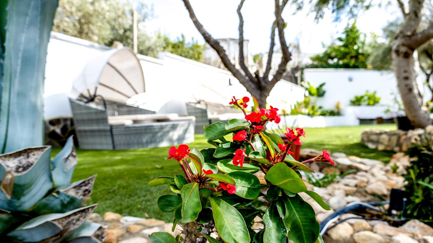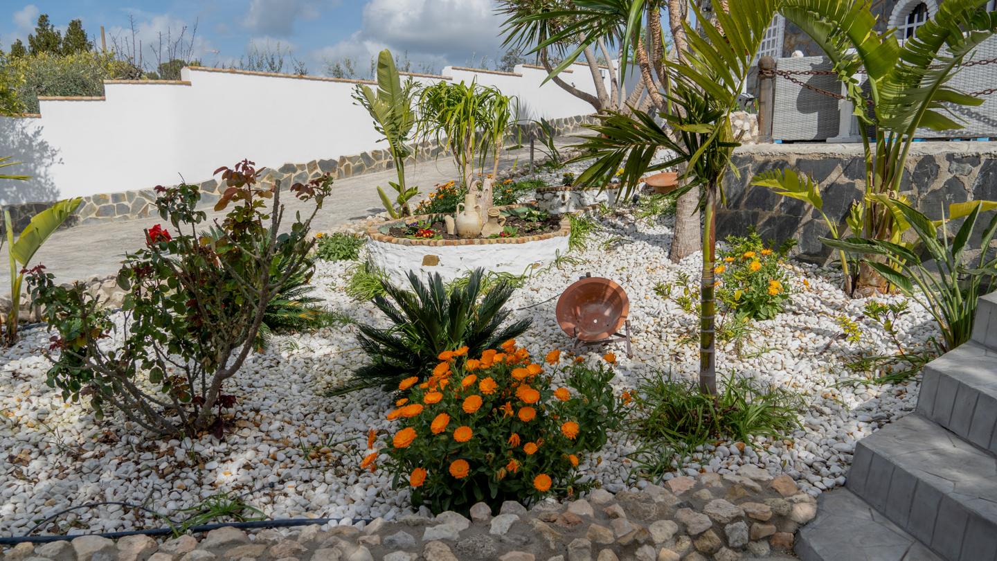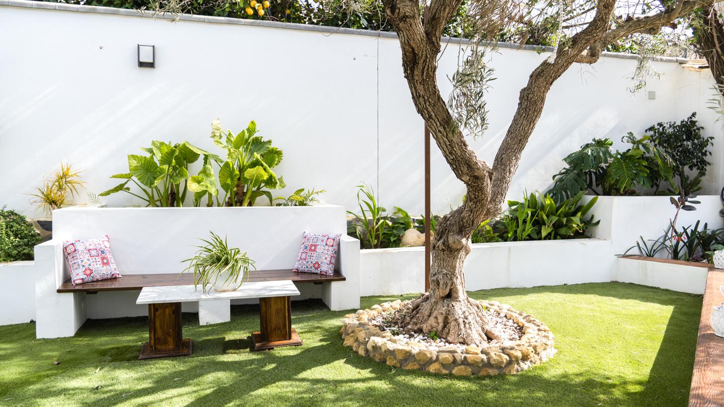•Jardín cuidado con árboles frutales, un rincón perfecto para desconectar.