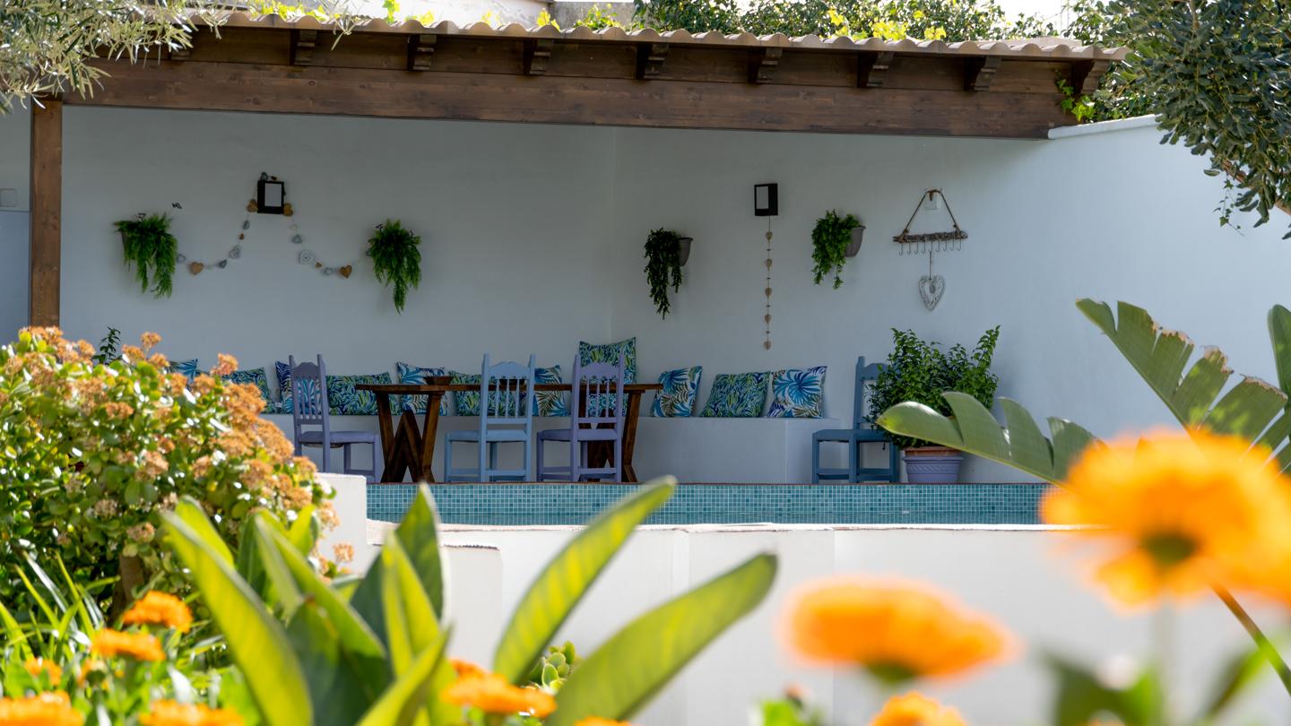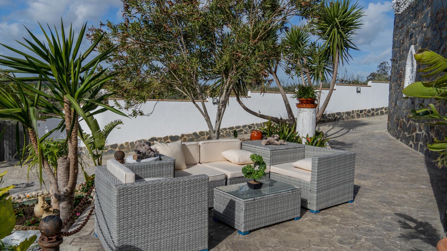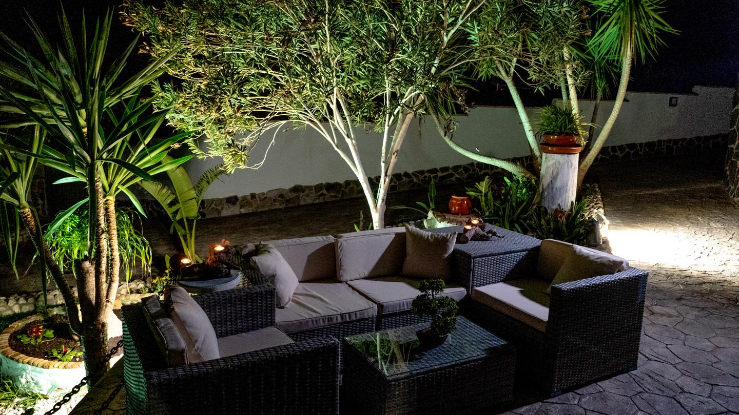 •Jardín cuidado con árboles frutales, un rincón perfecto para desconectar.