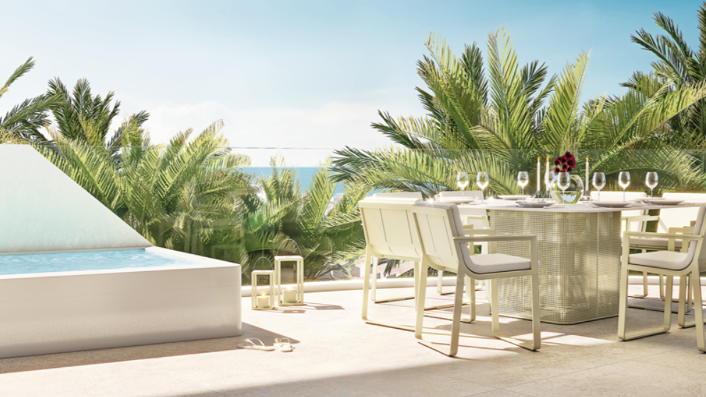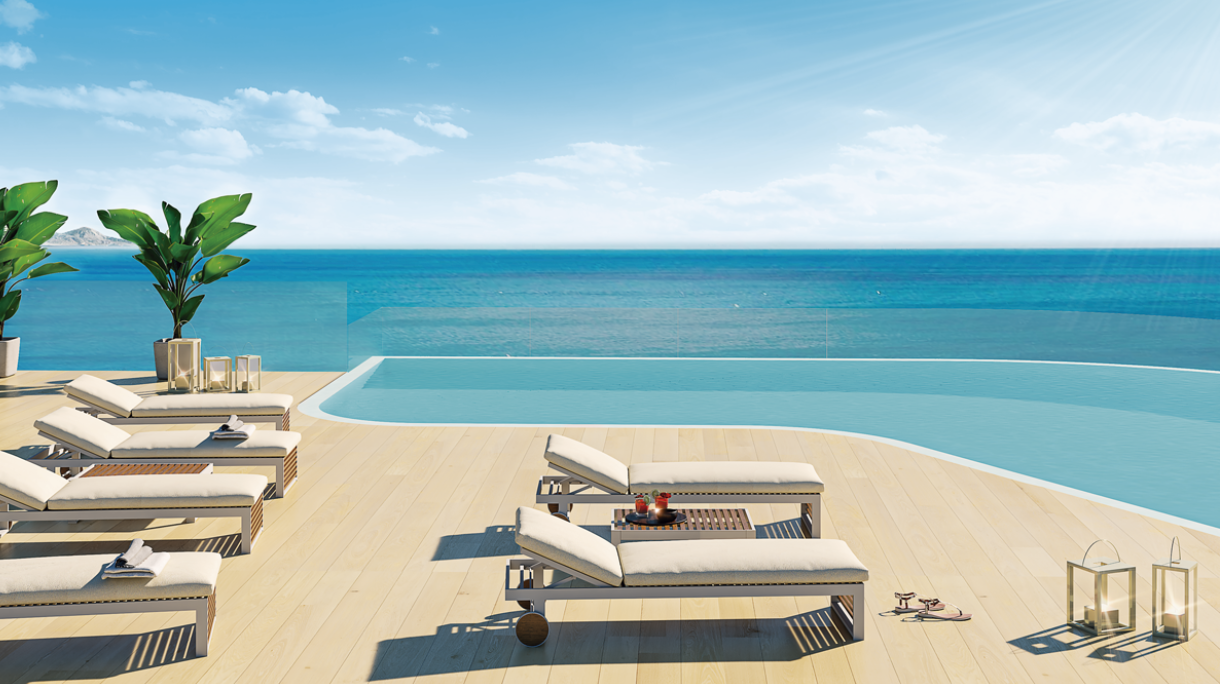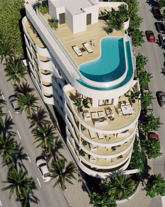 Piscina Infinity Comunitaria: Situada en la última planta, ofrece vistas panorámicas al mar y es el lugar ideal para relajarse bajo el sol.